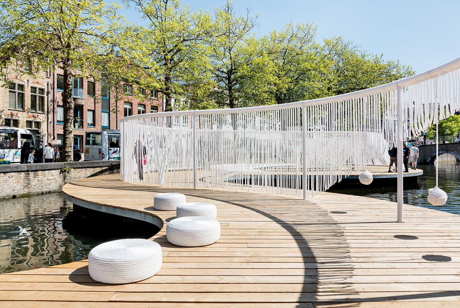 Trong dự án TRIENNALE BRUGGE 2018, OBBA dự định sẽ tạo ra một sự thay đổi nhỏ cho cảnh quan tuyệt đẹp tại nơi đây.Bằng cách lắp đặt pavilion – như một “ đảo nổi”, một nơi nghỉ chân có hình dáng thuông dài ôm dọc theo 2 bên bờ con kênh và nổi trên mặt nước, OBBA cố gắng làm mờ ranh giới cứng nhắc của con kênh và hướng mọi người đến dọc bờ sông. Bằng cách này, các nhà thiết kế lên kế hoạch biến các con kênh thành nơi du khách có thể đi bộ, nghỉ ngơi, suy ngẫm và thưởng thức khung cảnh đẹp trên mặt nước,pavilion lúc này không chỉ là một không gian tạm làm đẹp cho thành phố mà còn là nơi giúp kết nối mọi người.