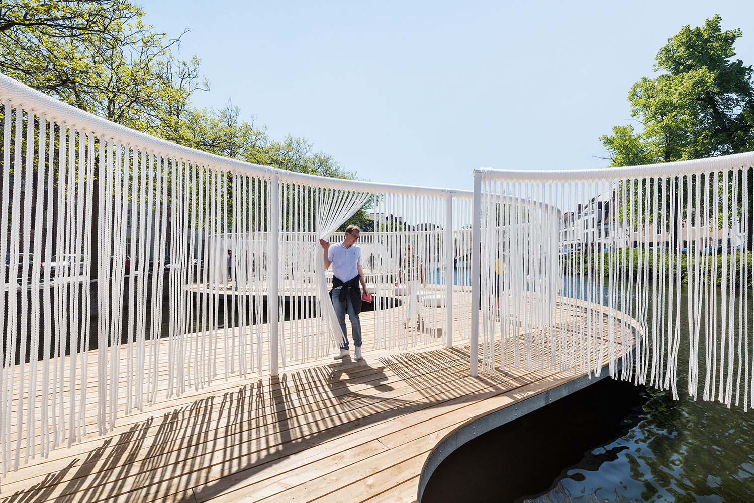 Không gian và hình dạng sẽ thay đổi tùy vị trí khác nhau,ở giữa pavilion,nơi tiếp xúc giữa tấm boong và mặt nước được thiết kế riêng để du khách có thể thư giản tại đây. Du khách có thể tắm nắng dựa vào những sợi dây thừng nghiêng hoặc nghỉ ngơi trên những chiếc võng dây thừng rộng nhìn những đám mây lơ lửng trên bầu trời. Ngoài ra, họ có thể ngồi bên mép boong và giảm bớt căng thẳng của mình bằng cách nhìn dòng nước lặng lẽ chảy, đọc sách,chơi xích đu hay đôi lúc chỉ đơn giản là nhìn lại bản thân mình khi ngồi giữa không gian tập thể một mình.