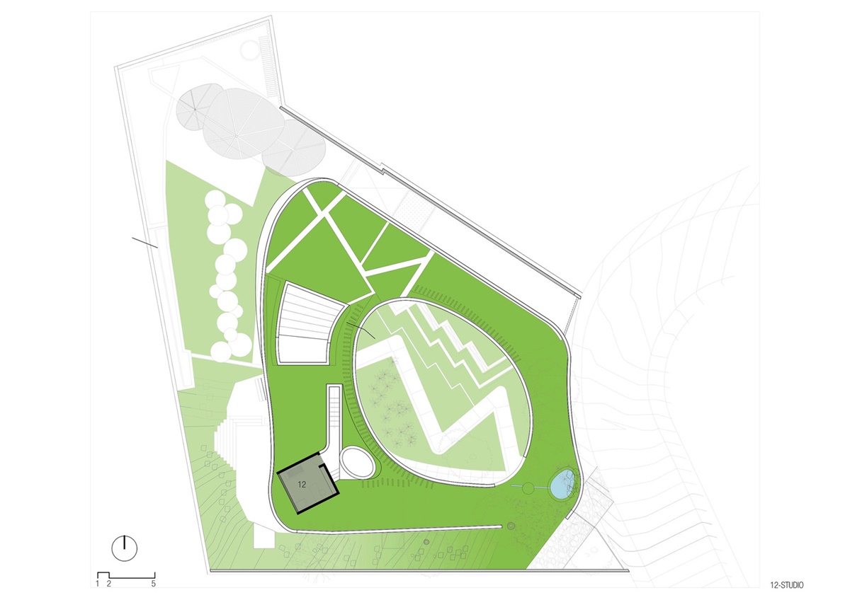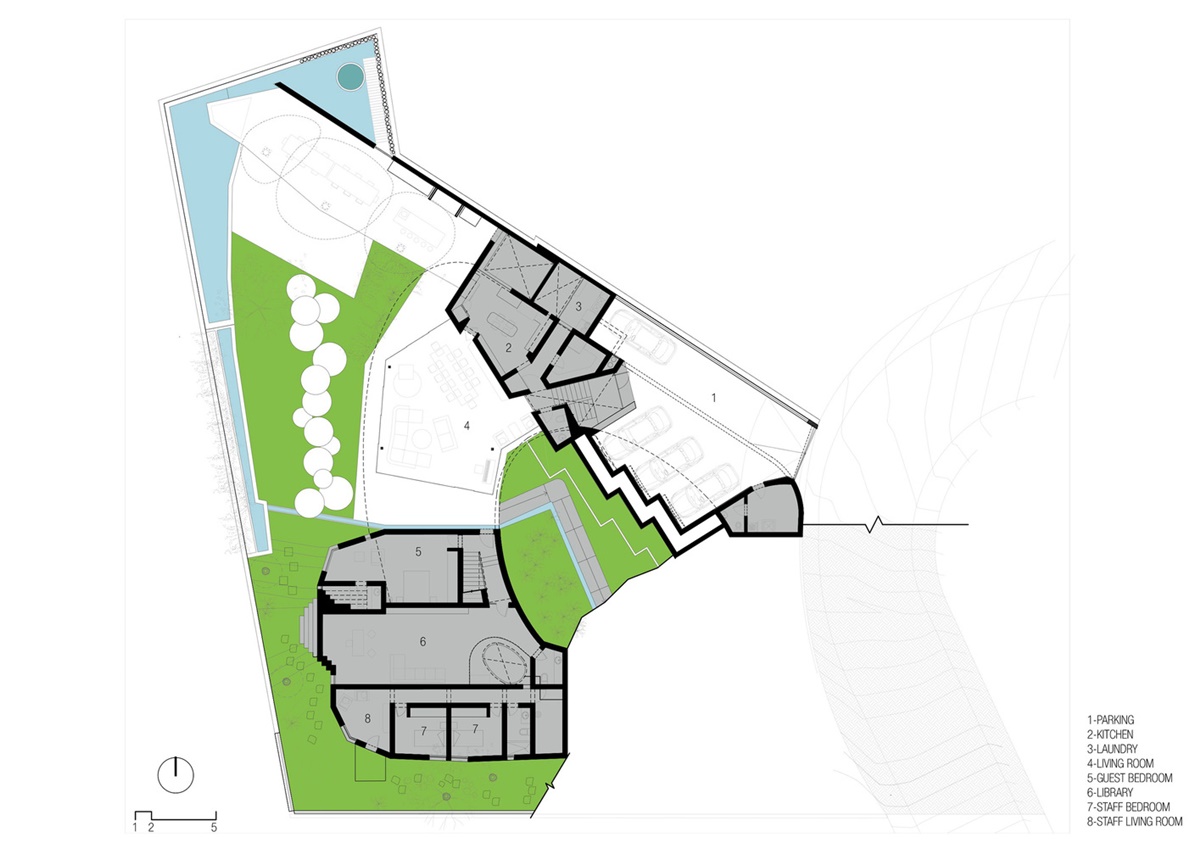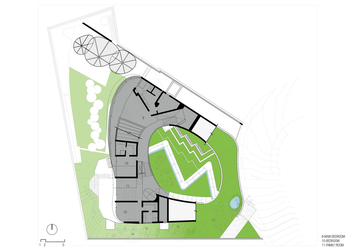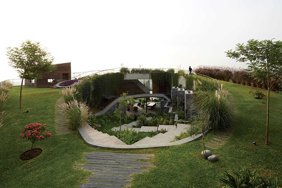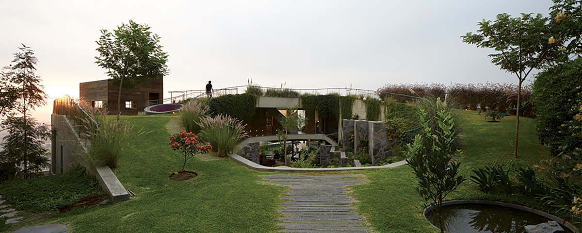 Ngôi nhà mang cấu trúc phân cấp với nhiều lối vào như làm mờ đi ranh giới giữa nội thất và ngoại thất.