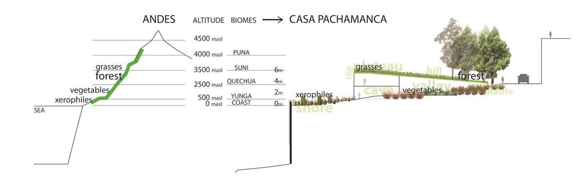 Pachamanca House tại Lima, Peru mượn tên từ một kỹ thuật nấu ăn cổ dưới lòng đất của người Peru. Ngôi nhà được thiết kế cho vợ chồng đầu bếp nổi tiếng cùng con gái của họ.