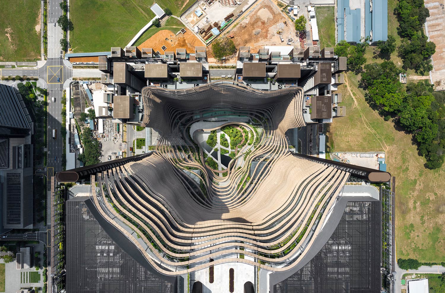 Gustafson Porter + Bowman: Marina One là một khu công trình phức hợp mang tính sáng tạo, bền vững và có mật độ xây dựng cao, nằm trong khu vực tài chính Marina Bay sôi động, nơi Chính phủ Singapore muốn trở thành “Thành phố trong một khu vườn”. Marine One gồm bốn tòa tháp được bố trí xung quanh quảng trường trung tâm, dự án biến khu vực cảnh quan rộng lớn bên ngoài như tràn vào bên trong tòa nhà. Thiết kế của Gustafson Porter + Bowman cho công trình được coi là biểu tượng ‘Trái tim Xanh’ có sự kết hợp rất hài hòa yếu tố điêu khắc , cây xanh cảnh quan cùng với kiến trúc của tòa nhà. Trong khi mặt ngoài của bốn tòa tháp (do các kiến trúc sư Ingenhoven thiết kế) đã tối đa hóa không gian bên trong và cho phép tòa nhà có thể tạo ra một khu vườn nhiệt đới dày đặc bên trong.